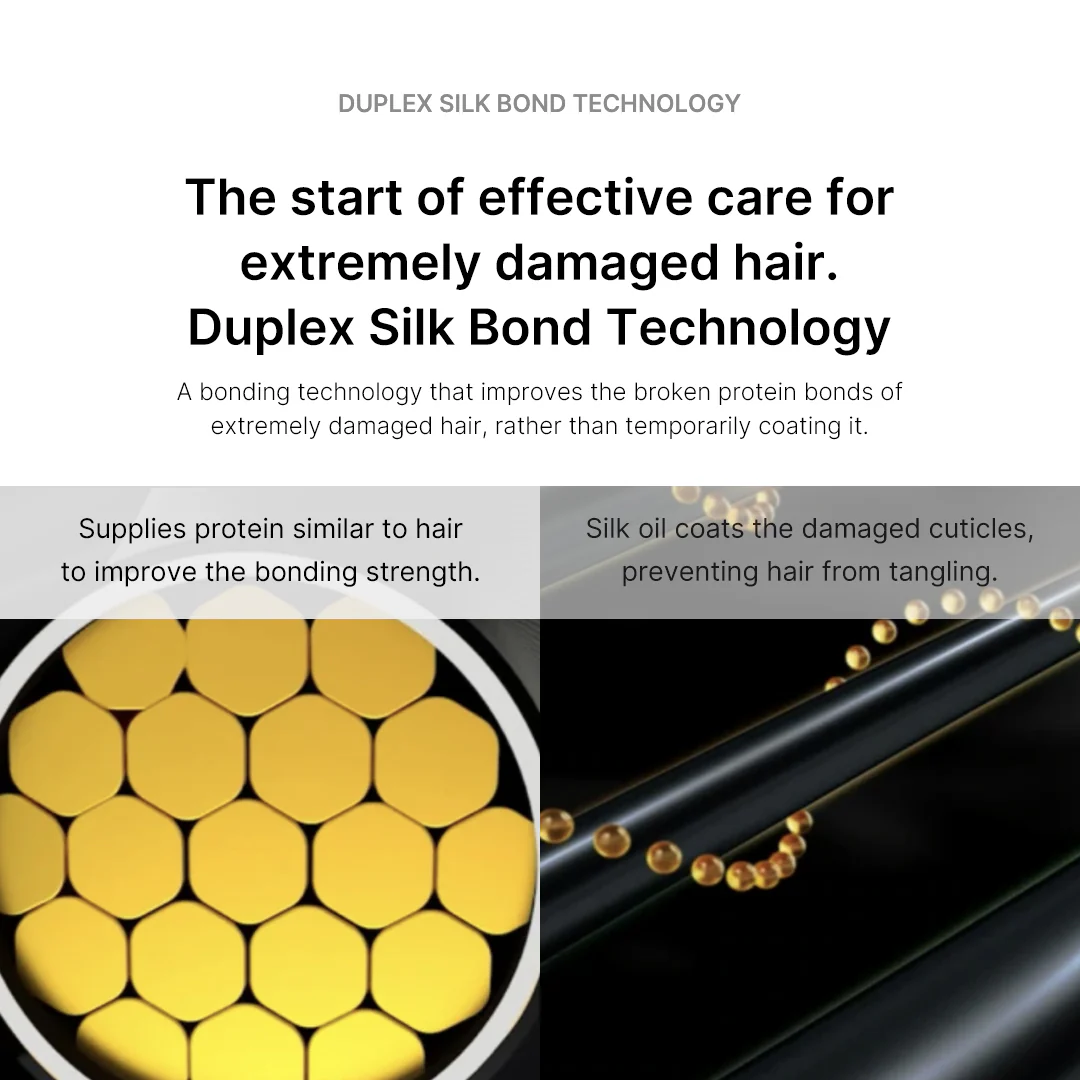 A bonding technology that improves the broken protein bonds of extremely damaged hair, rather than just a temporary coat -